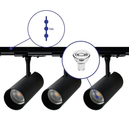 Beschrijving Bright Choice Complete Set 1-Fase Rail 1 Meter Zwart | incl. 3x Spot + GU10 2700K 3W Dimbaar + Eindkap, Voedingsconnector
