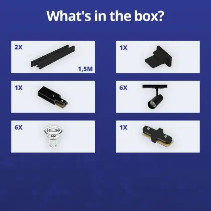 Beschrijving Bright Choice Complete Set 1-Fase Rail 3 Meter Zwart | incl. 6x Spot + GU10 2700K 3W Dimbaar + Eindkap, Voedingsconnector en I-Verbindingsstuk