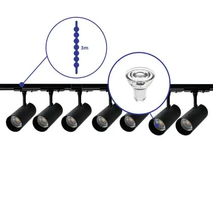 | Fabrikantnaam | Complete Straight 3-meter 1-Phase Track Set Black incl. 7x Spot fixture + GU10 2700K 3W Dim – 2x 1.5 | |