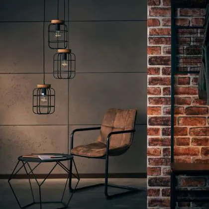 Beschrijving Brilliant Gwen Hanglamp Metaal Hout Zwart | 420mm - Geschikt voor 3x E27
