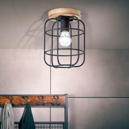 Beschrijving Brilliant Gwen Plafondlamp Metaal Hout Zwart | 200mm - Geschikt voor 1x E27