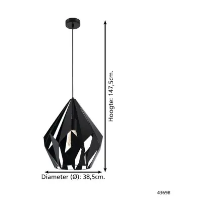 Beschrijving Eglo Hanglamp Carlton 5 Staal Zwart | IP20 - Geschikt voor 1x E27