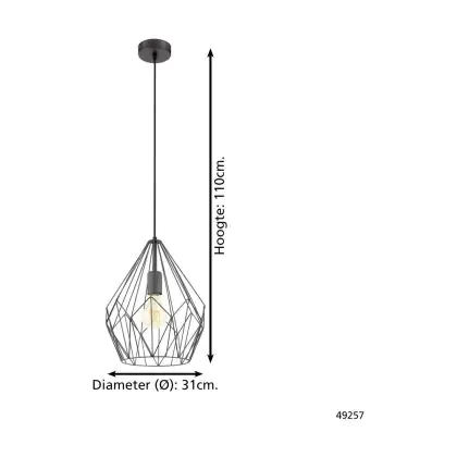Beschrijving Eglo Hanglamp Carlton Staal Zwart | IP20 - Geschikt voor 1x E27