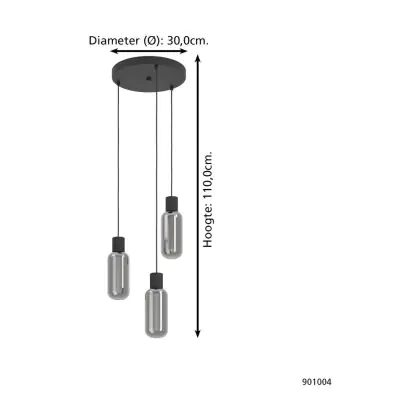 Beschrijving Eglo Hanglamp Maione Staal Zwart | IP20 - Geschikt voor 3x E27