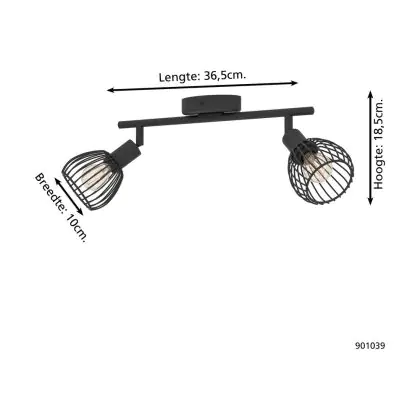 Eglo Plafondlamp Sonni Staal Zwart | IP20 - Geschikt voor 2x E14