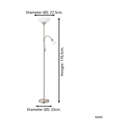 Beschrijving Eglo Vloerlamp Up 2 Staal Satijn Nikkel | IP20 - Geschikt voor 1x E27