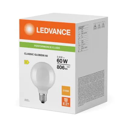 Beschrijving Ledvance Classic LED Globe Mat 5.9W 806lm - 827 Zeer Warm Wit | Vervangt 60W