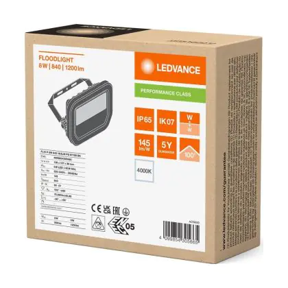 Beschrijving Ledvance LED Breedstraler Aluminium Zwart 8W 1200lm 100D - 840 Koel Wit | IP66 - Symmetrisch