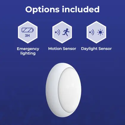 Beschrijving Noxion LED Bulkhead Pro V2 12/16/20W 2400lm - 830-840-865 CCT| 325mm - IP65 - Bewegings- en Lichtsensor - 3 Uur Noodverlichting + Ring Wit