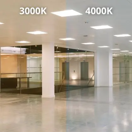 De kleurtemperatuur 3000 Kelvin geeft qua licht een zachte/warme tint. Dit komt vooral goed van pas in ruimtes zoals een foyer, balie, gang, hal, kantine of een ontvangstzaal. Je kunt qua kleurtemperatuur ook kiezen voor 4000 Kelvin. Dit is wat kouder licht met een meer natuurlijke tint, wat onder andere bevorderlijk is voor het dag/nacht ritme en de concentratie.