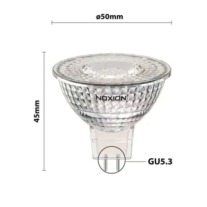 Noxion is al jarenlang het snelstgroeiende lichtmerk van Europa. En dat is terug te zien aan de kwaliteit van deze Noxion GU5.3 (MR16) LED lamp. Een mooie gelegenheid dus om afscheid te nemen van je oude GU5.3 halogeenspot en te kiezen voor deze duurzame en efficiënte LED vervanger. Je ervaart met deze Noxion GU5.3 LED spot onder meer een hoge lichtopbrengst van 345 lumen, terwijl je dankzij een levensduur van 15000 uur vele jaren plezier hebt van deze LED verlichting.