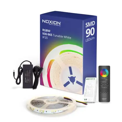 Beschrijving Noxion LED Strip Naga 5 Meter Complete Set - 24V - 90LEDs/m - 12W/m - RGBW - 930-965 Afstembaar Wit | 12mm - IP20 - Beste Kleurweergave - SMD2835+SMD5050