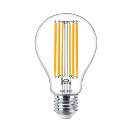 De E27 LED lampen van Philips kunnen op twee manieren zijn afgewerkt: helder of mat. Deze klassieke lamp heeft een helder design waardoor de bedrading in de lamp zichtbaar is. De LED lamp lijkt hiermee op de originele gloeilamp en heeft een wat stoerder karakter dan de matte varianten.