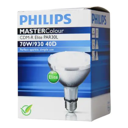 Met 3000K geeft de Philips CDM-R Elite 70W 930 E27 PAR30L 40D (MASTERColour) een sfeervol warm licht. Dit zorgt vooral in horecagelegenheden en winkels, door de sfeervolle ambiance, voor een entree waar je graag naar binnen gaat.