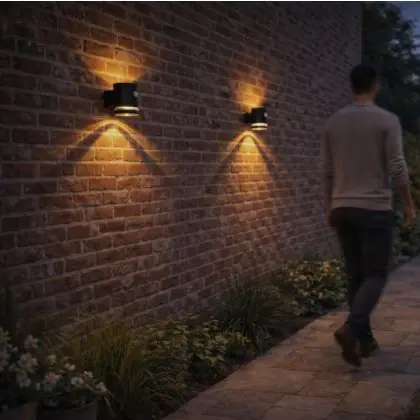 Beschrijving Voordeelpak 4x D'Lite Wandlamp Solis Solar Zwart Up & Down - 830 Warm Wit | IP54 - Bewegingssensor