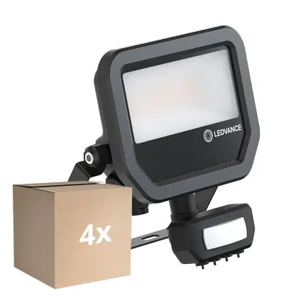 Voordeelpak 4x Ledvance LED Breedstraler Aluminium Zwart 17W 2200lm 100D - 830 Warm Wit | IP65 - Bewegings- en Lichtsensor - Symmetrisch