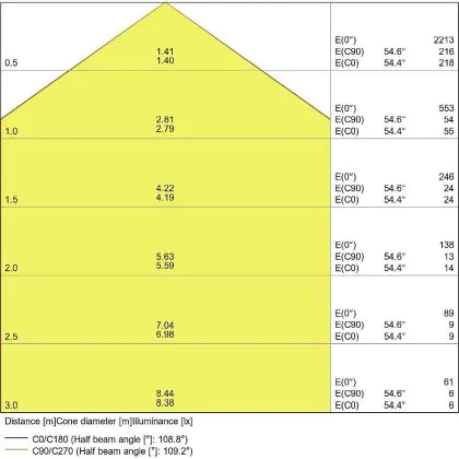 De gradenbundel geeft informatie over hoe breed het licht wordt uitgestraald. Dit zit tussen de 0 en 360 graden (D). Hoe kleiner de hoek, hoe specifieker de lichtbundel is. Over het algemeen is een smalle gradenbundel perfect voor sfeer- of accentverlichting, terwijl een brede gradenbundel ideaal is om grote oppervlaktes te verlichten.